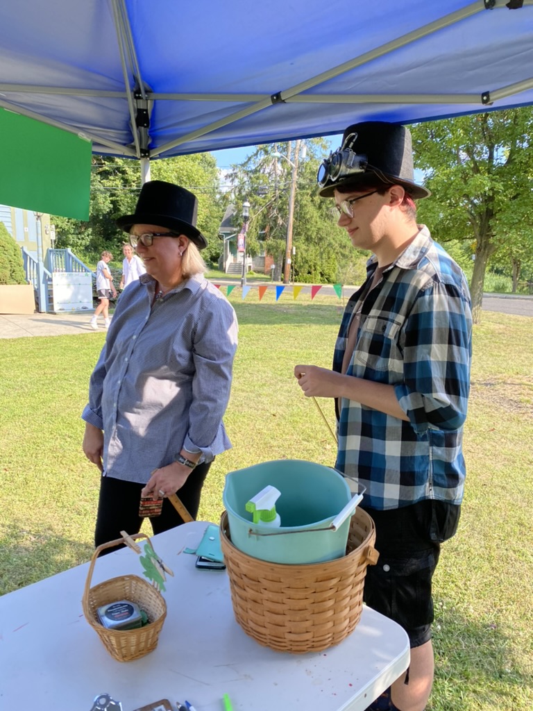 as the crowd gathered on the back lawn of the Vincentown Library to celebrate the first ever Frog Jump, organized by Mrs Pew (aka Ms Kim). Yes indeed, it was an evening to remember. Registration was brisk with the number of entries topping at a grand total of 31! Froggy, Astro, Leo, Sonic, Bunz, Beans, Bob Ross, Bob Ross Jr., and Fiona (to name just a few) were all proudly entered into the event by their Frog Jockeys.