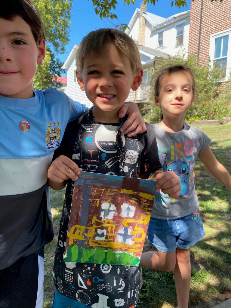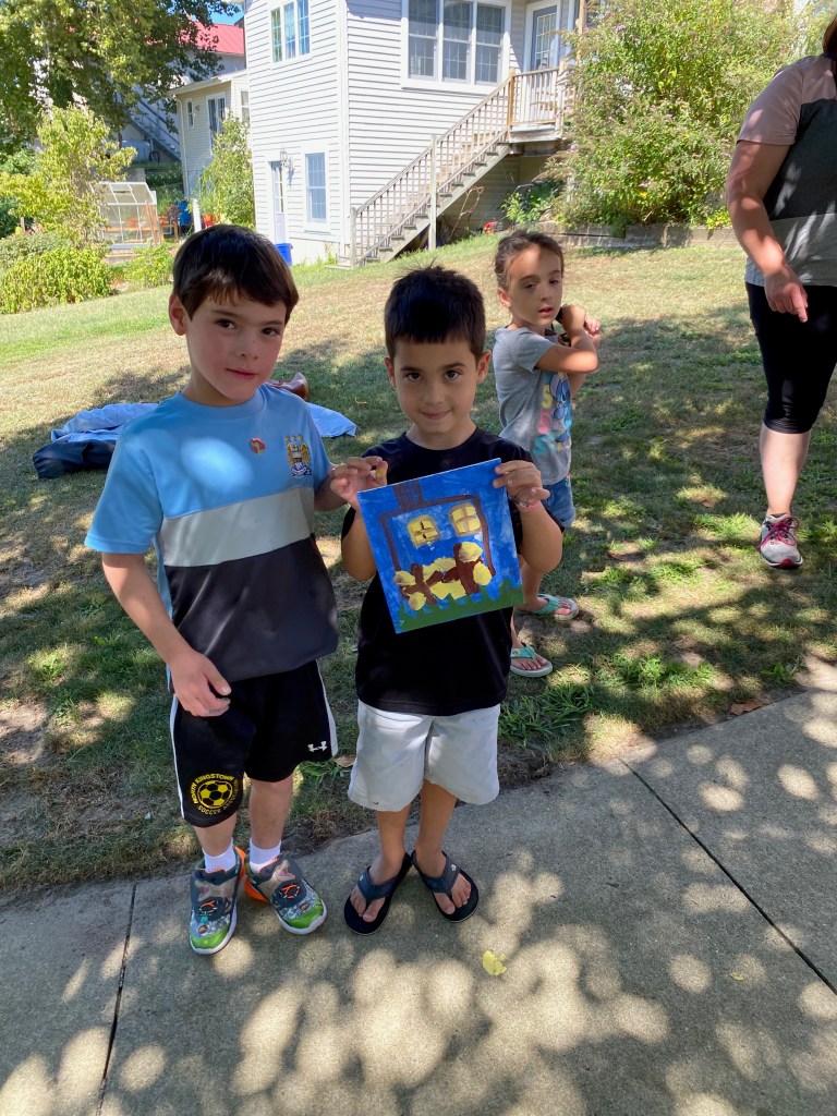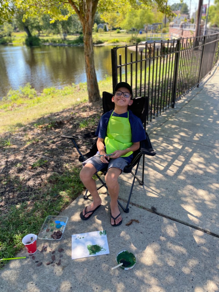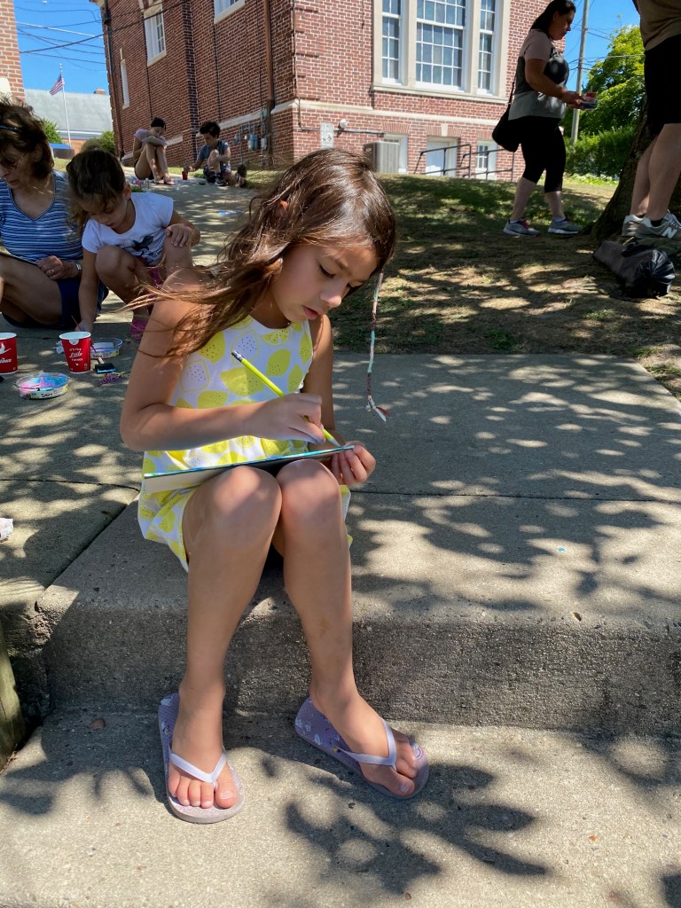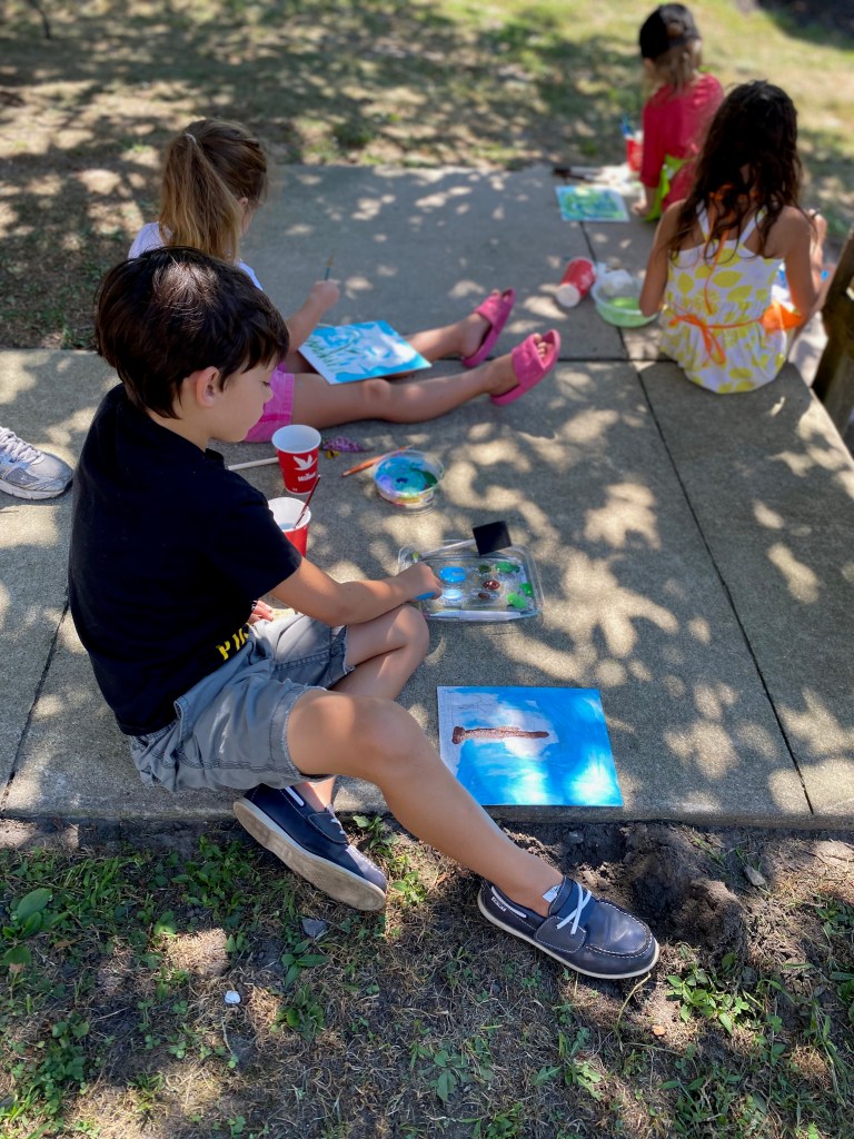 Today was such a glorious day to get outdoors…and we did just that! We took our paints, brushes and canvas boards behind the library to paint. That “bit” of summer breeze hardly discouraged our artists!