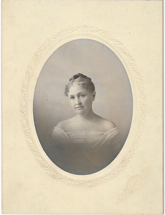Of all the images that we found during our research, this is a favorite. Posed in front of a curtain backdrop, Sally is looking down modestly at a ring on her right hand as a gentleman stands facing her, hands behind back, not touching her and with a look of great affection. On the back was written “Sally Stretch Keen and maybe William Irick?”