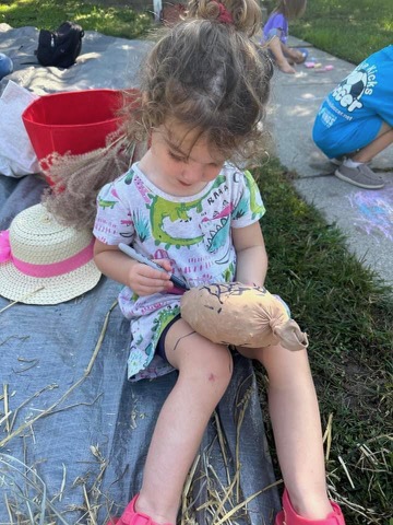 It looks like our weekly story hour has become an outdoor event! Ms. Kim and the story hour crew have created a great little scarecrow scene for the Burlington County Scarecrow Contest.