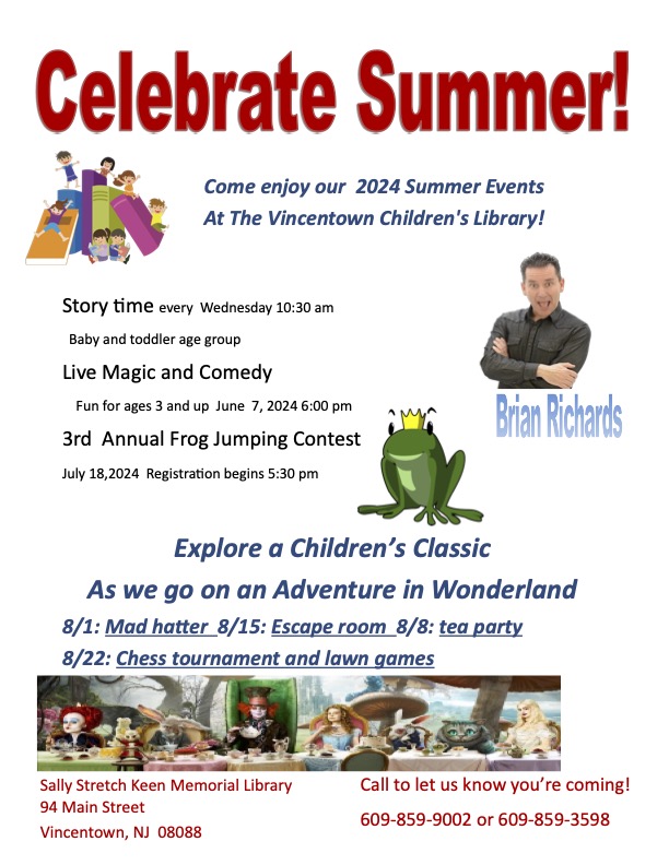 In the Children’s Library,  the arrival of spring has Miss Kim thinking about summer. Once again we’ll have the annual backyard event with Magician Brian Richards, and, the ever popular Frog Jump. And Miss Kim has planned a fun filled month of Adventures in Wonderland, based on Alice’s Adventures in Wonderland. Stop by the library and visit for more information.