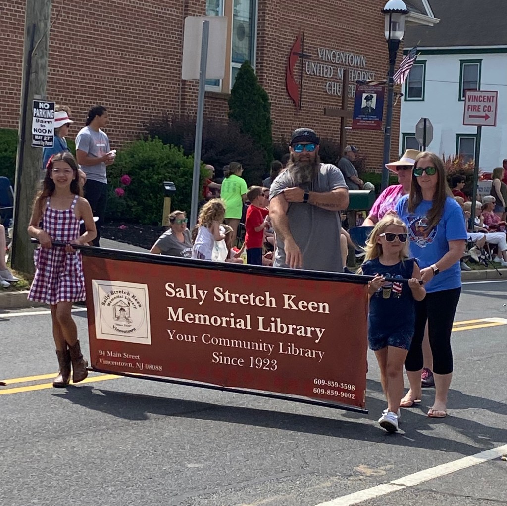 It turned out to be another beautiful morning for the annual Memorial Day Parade. The crowds of spectators and parade participants, once again, turned out to honor our veterans. Though weather predictions kept many from joining our bike brigade, the banner was proudly carried the entire distance by two brave, young friends of our library.
