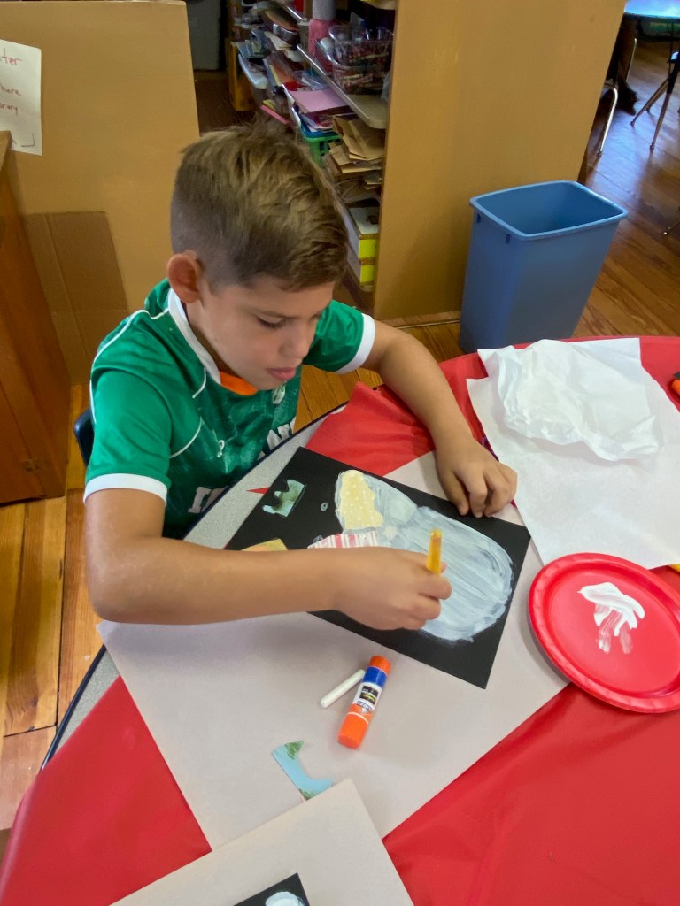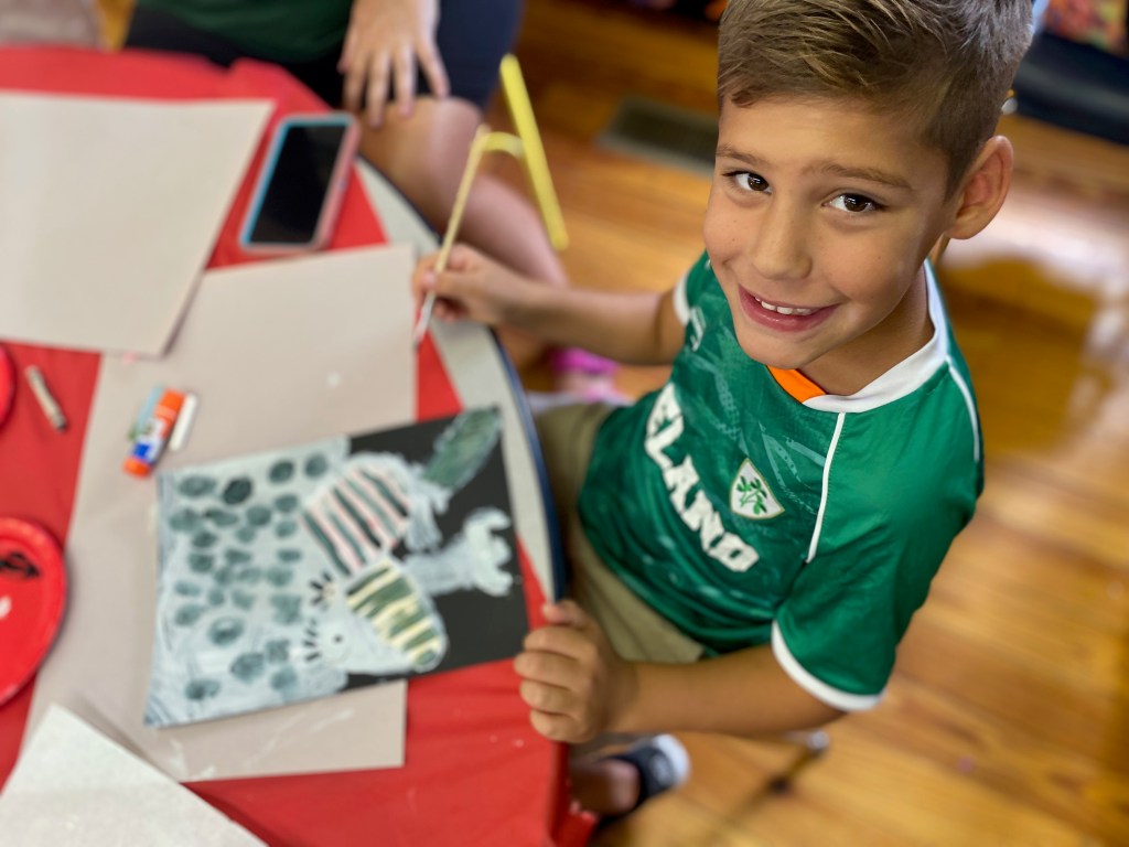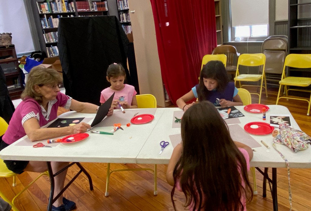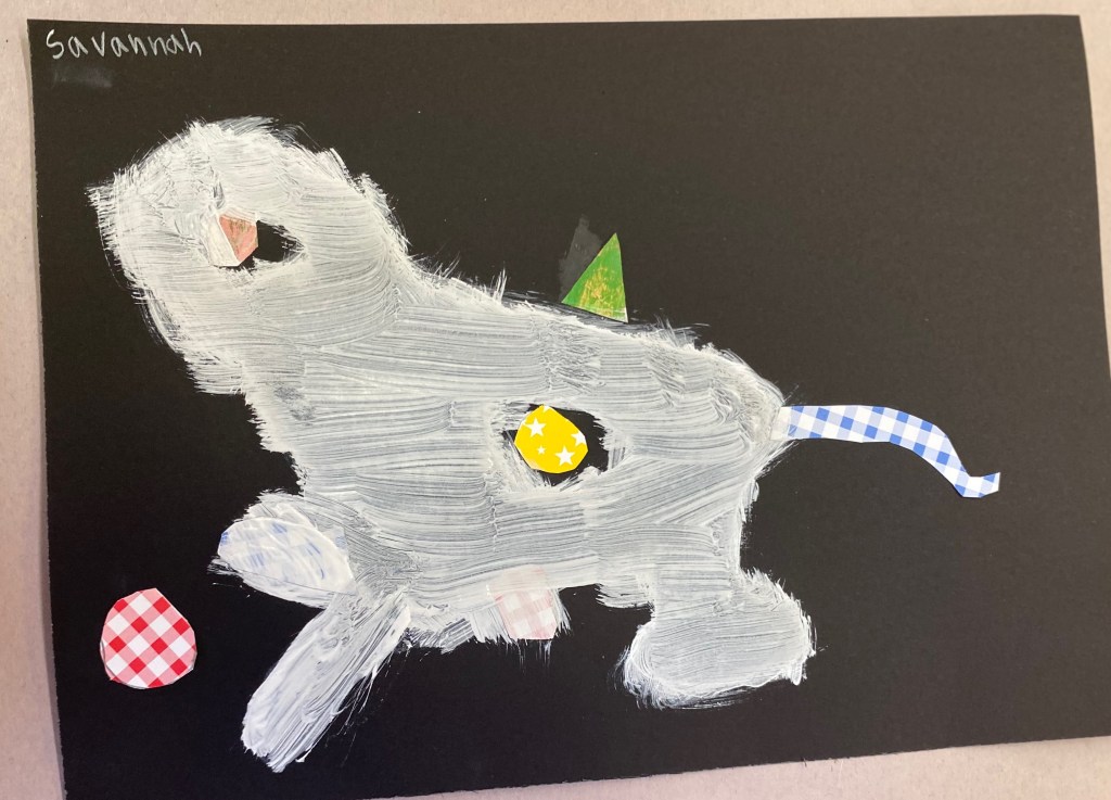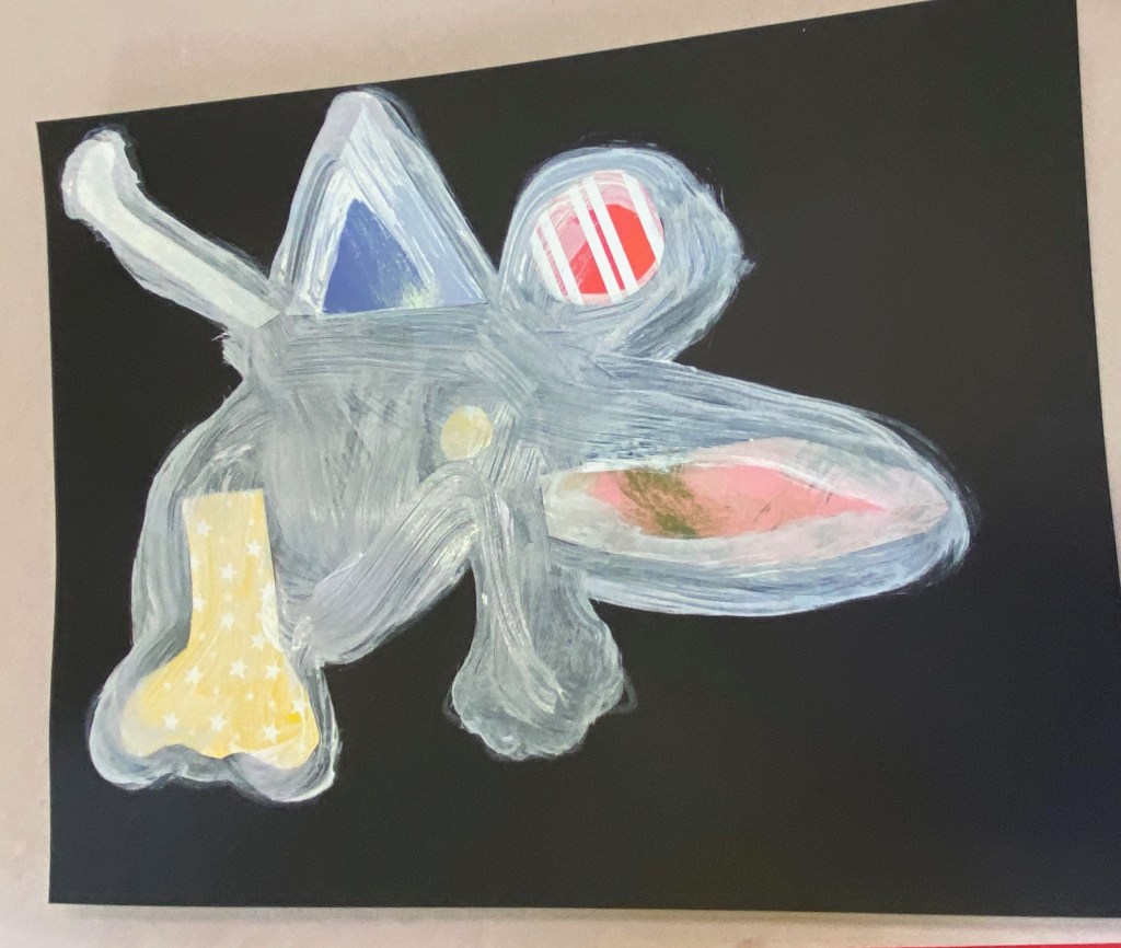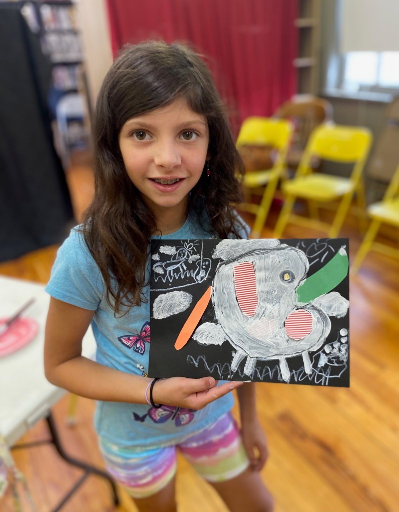 Today was the summer wrap-up in the Children’s library with a crazy project. Interesting interpretations of randomly placed cut pieces of paper (partially with eyes closed!).The artists used their imagination and created very “unusual” animals.